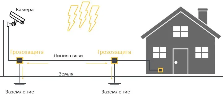 В случае поражения разрядом видеокамеры или линии ее подключения, риск попадания и разрушения распространяется и на диспетчерский центральный пункт. Чтобы обеспечить действительно комплексную защиту, нужно на линии подключения устанавливать защитные устройства не только со стороны камеры, но и от места расположения центрального процессора.
